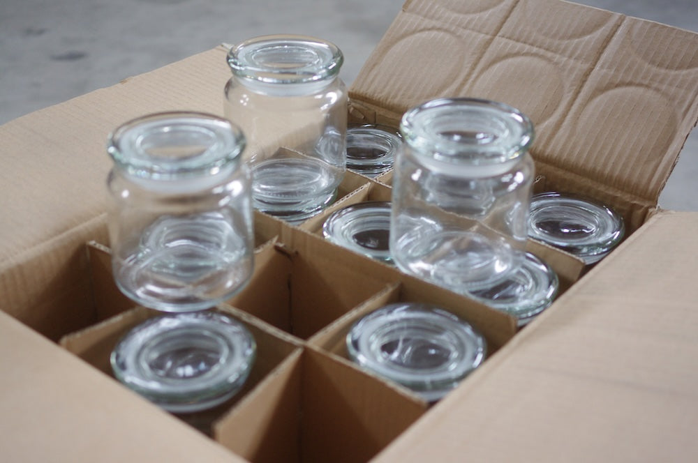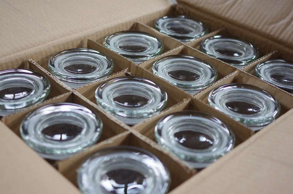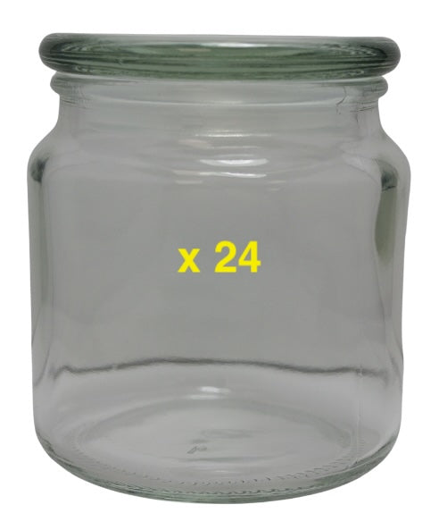 24 glass jars with gasketed lids. A single box containing 24 pieces.