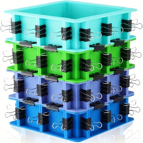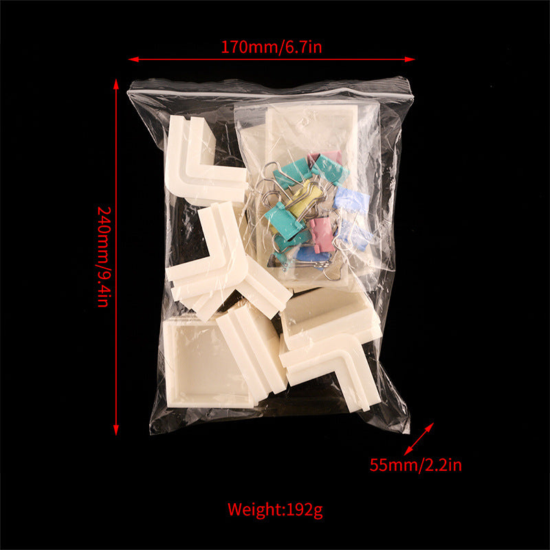 ABS plastic frame (ivory white color) for creating silicone molds: pack containing 12 pieces (8 linear pieces + 4 90° curved pieces) + 12 steel clips to keep the various pieces still.