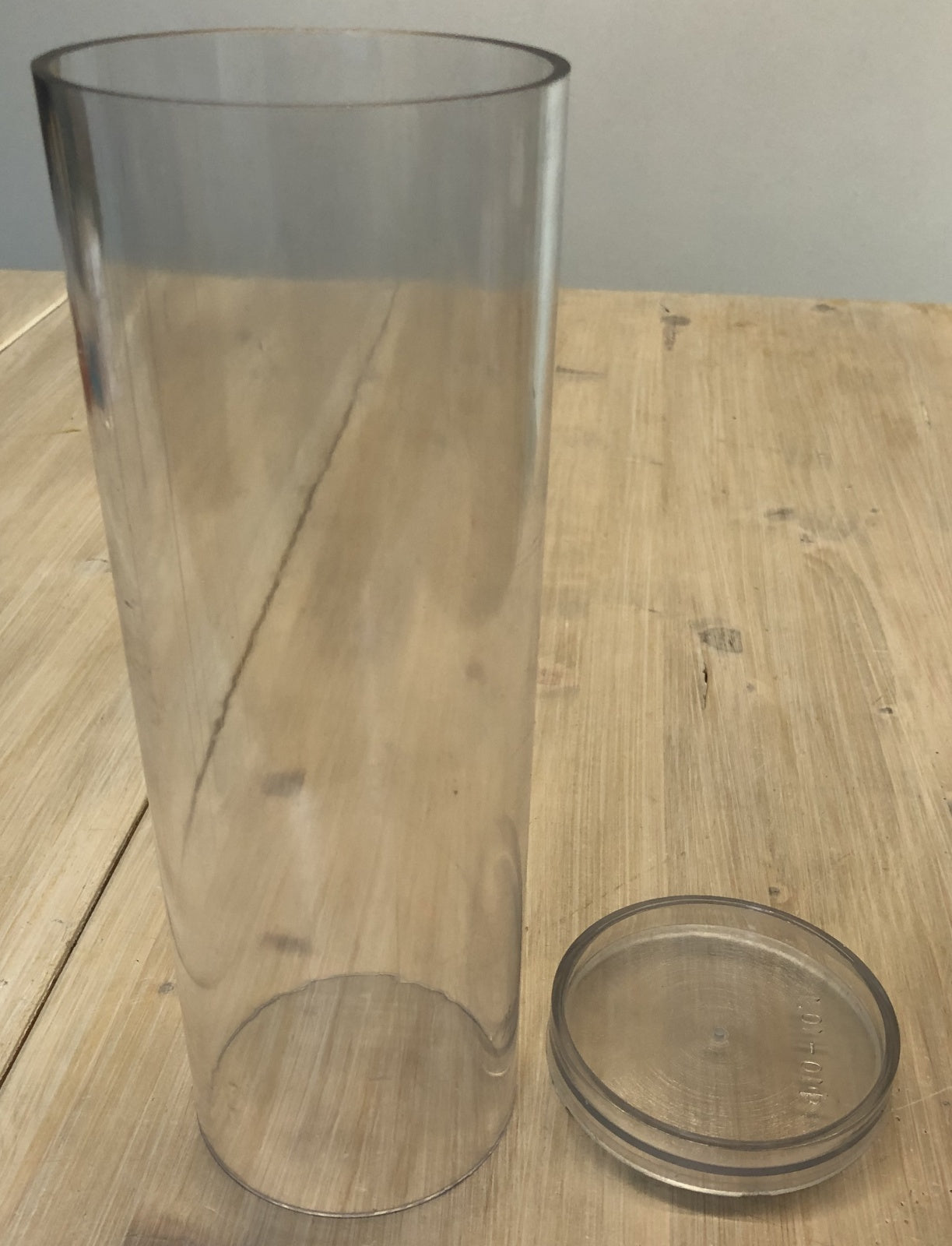 Polycarbonate cylindrical candle mold, 100 mm in diameter and 305 mm high. The tube is 3 mm thick.