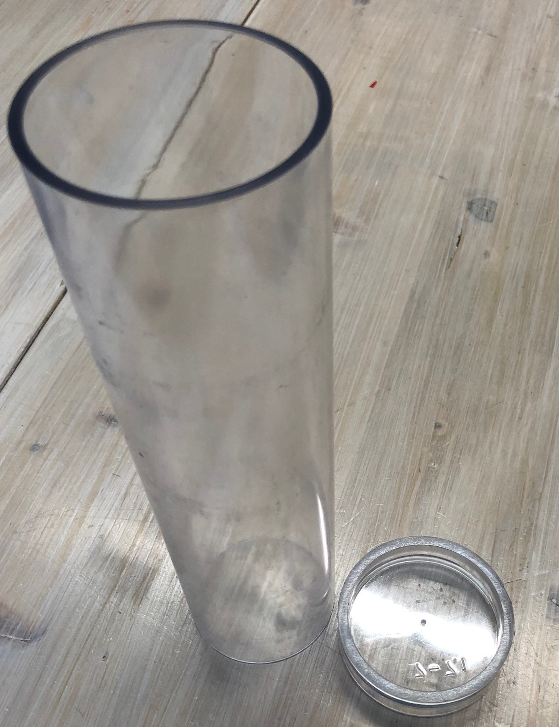 Polycarbonate cylindrical candle mold, 70 mm in diameter and 280 mm high. The tube is 3 mm thick.