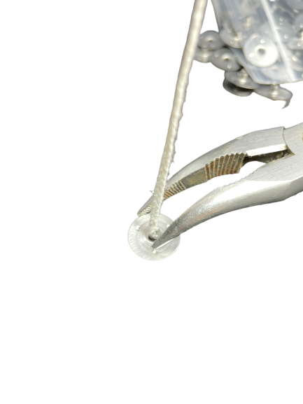 The wick should be inserted into the center hole and secured with pliers by tightening the holder. You can then dip the wick and metal base into the wax once or twice before placing it in the candle container.