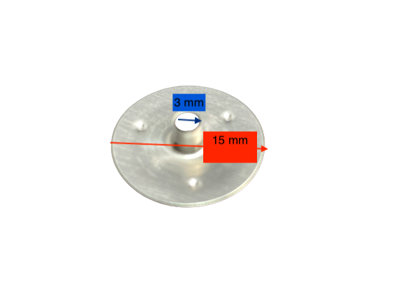 Metal support - holder, diameter 15 mm, central hole 3 mm, pack of 425 pieces (100 gr)