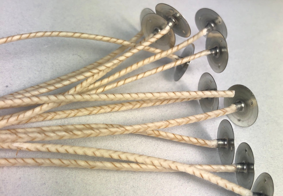 Waxed wicks with a foot for candles with a diameter of approximately 6-7 cm. 100 wicks per bag. Wick height 15 cm.