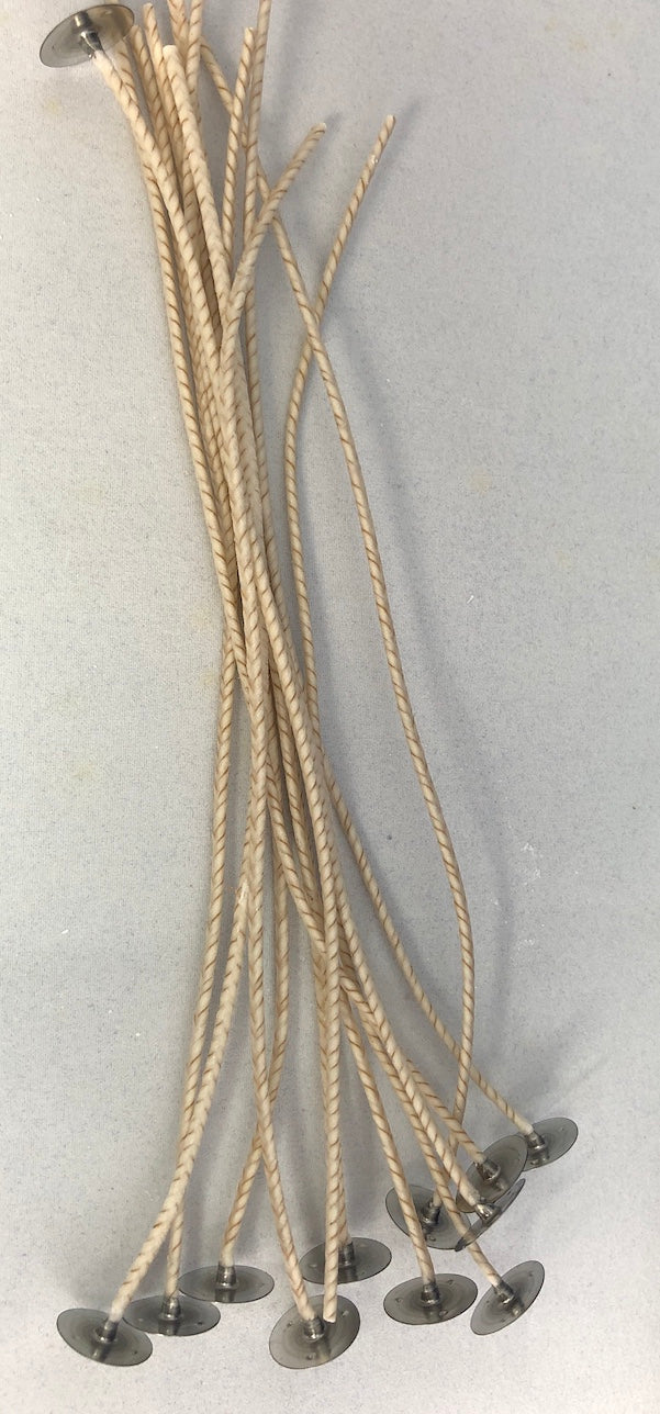 Waxed wicks with a foot for candles with a diameter of approximately 6-7 cm. Wick height 15 cm.