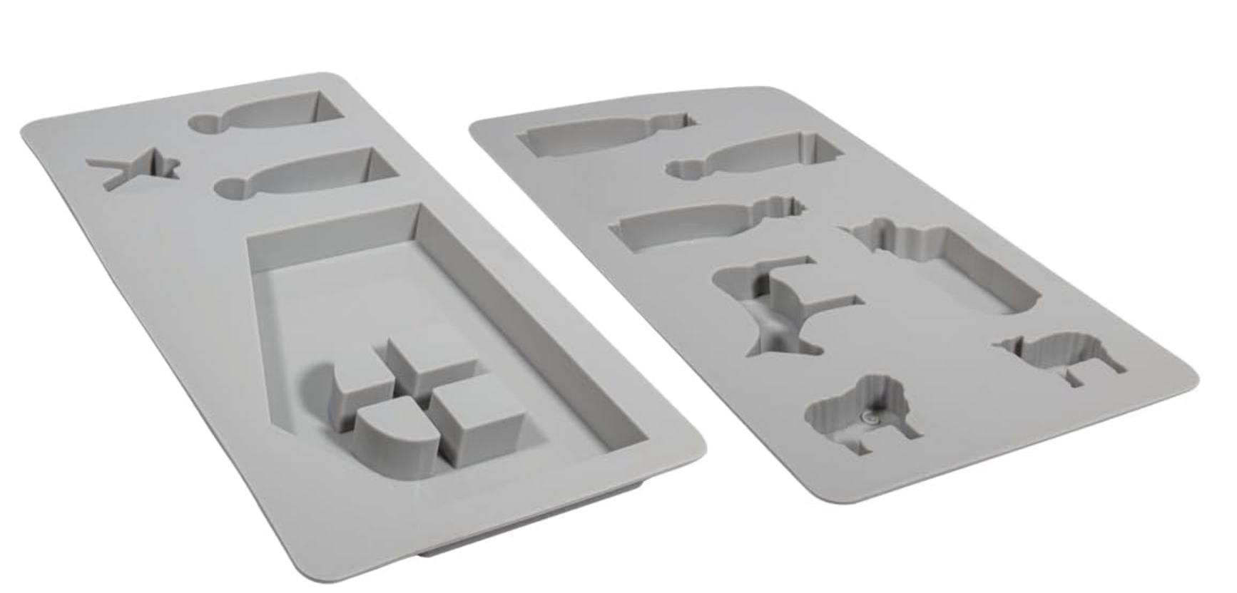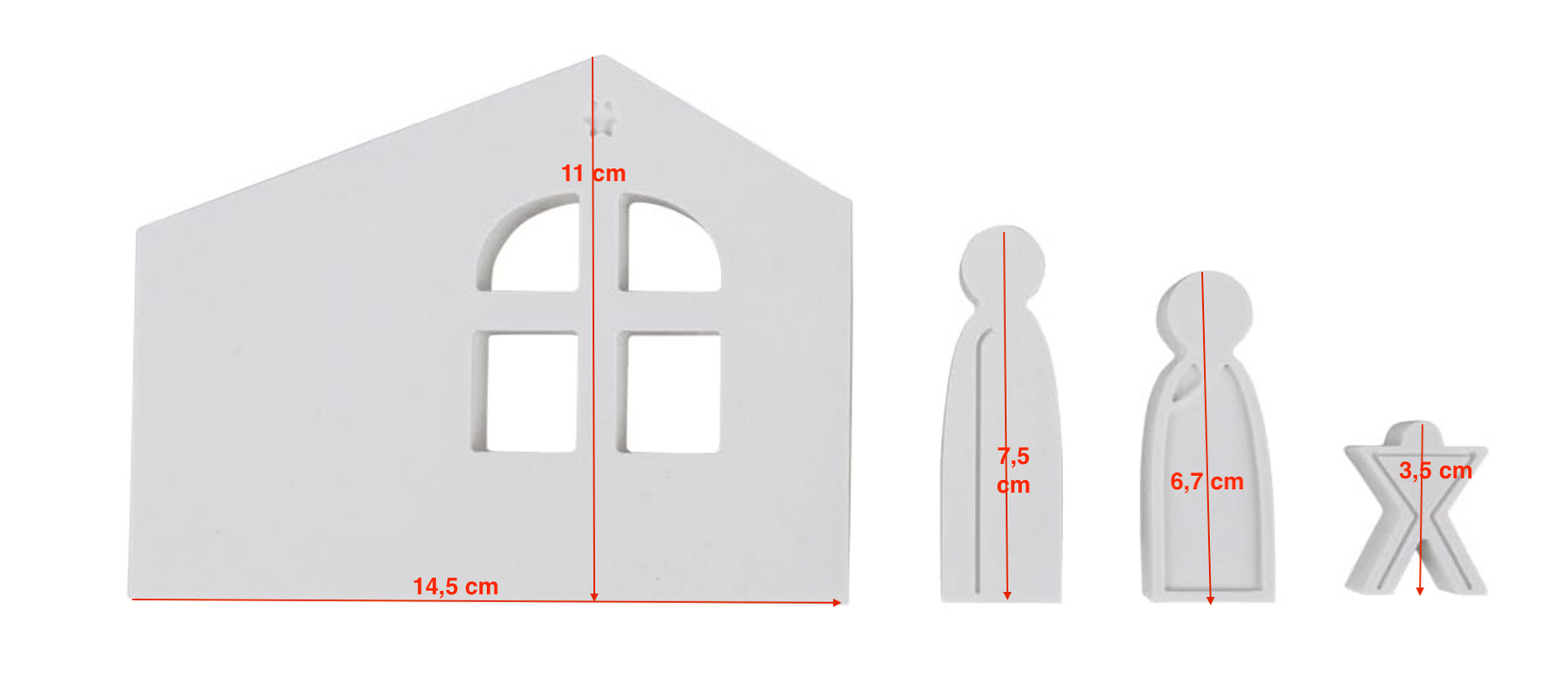 Silicone mold for creating stylised nativity scene characters and animals, including the stable.
