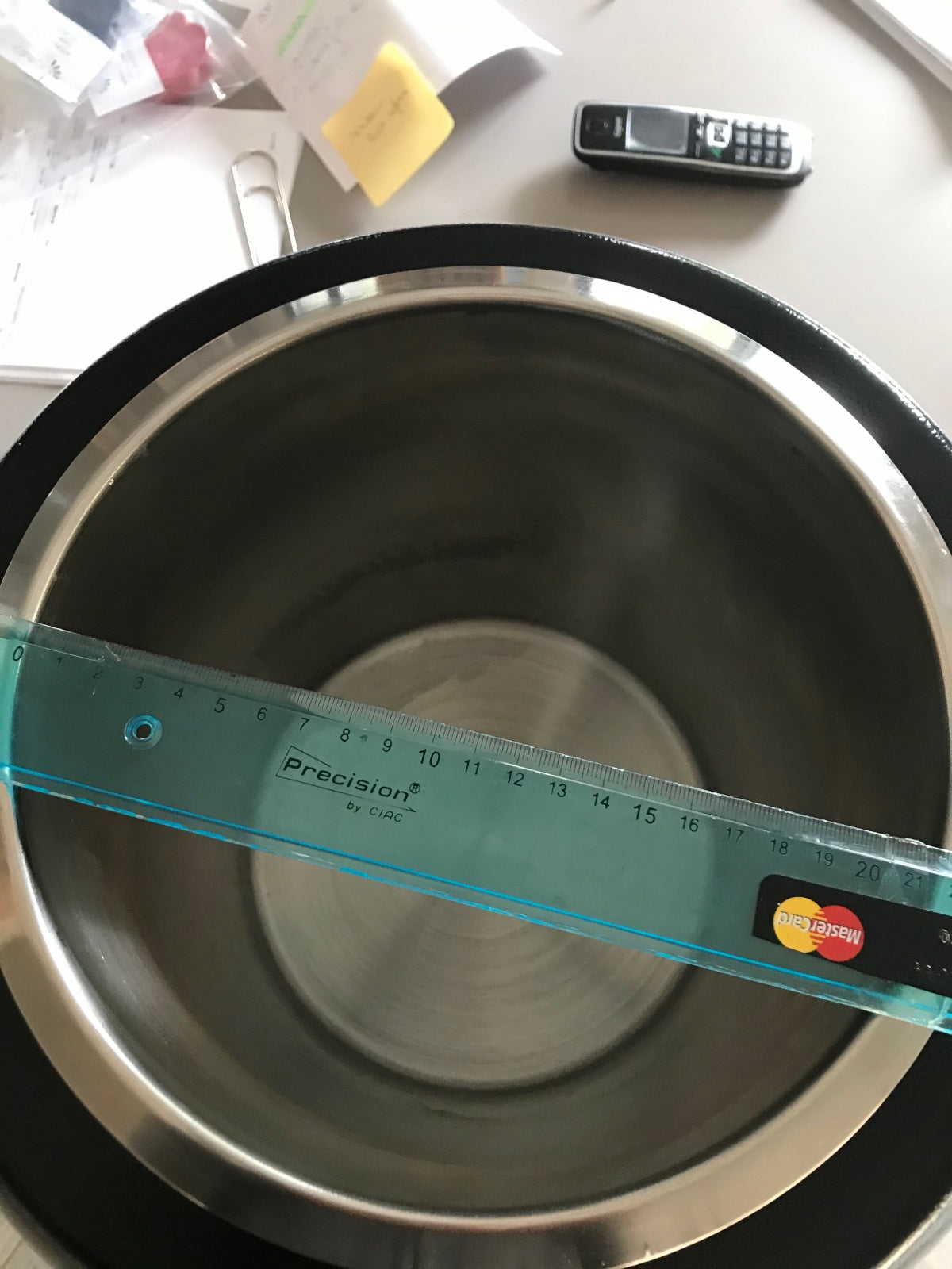 Melter equipped with a removable steel container where the wax is placed (dimensions: diameter 21 cm, height 25 cm approximately); this steel cylinder is inserted into the melter where it comes into contact with approximately 0.8 litres of water.