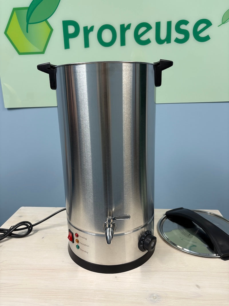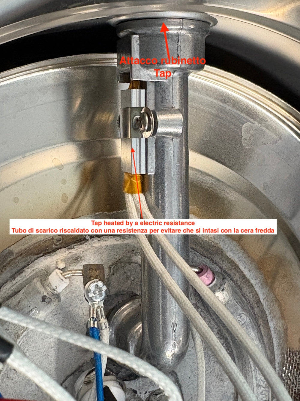 Wax melter equipped with a metal tap (hot wax comes out of the tap and can be poured directly into the mold), thermostat that allows you to set the desired temperature FROM 30 TO 110 °C.