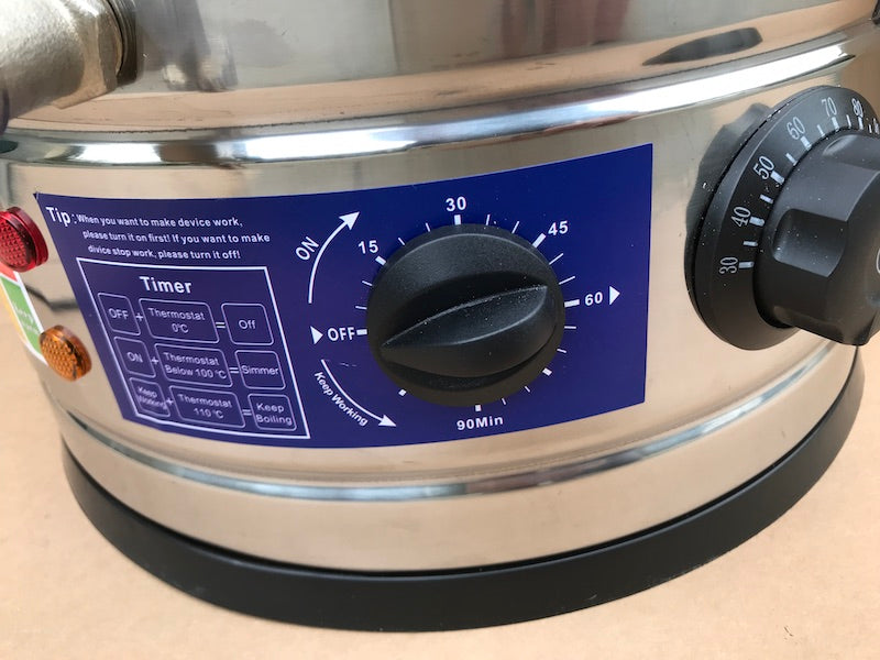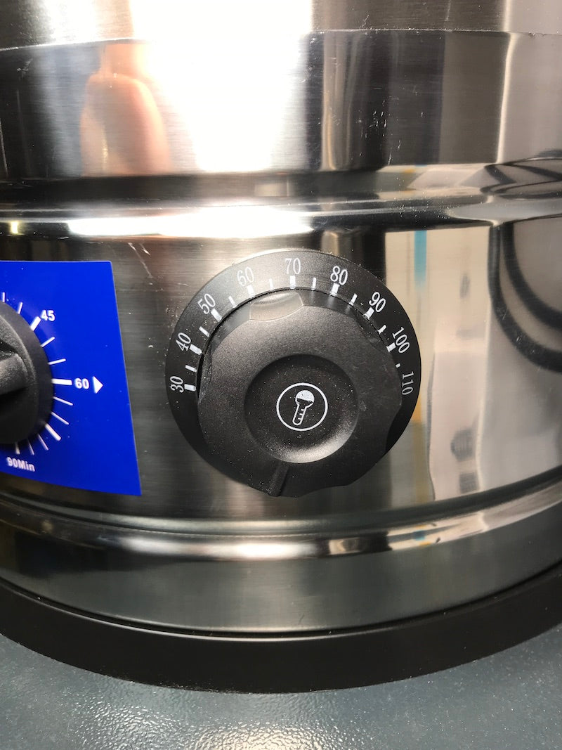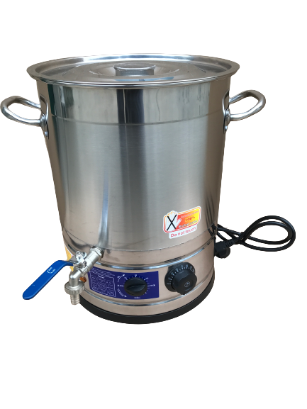 20 kg wax melter equipped with a metal tap (hot wax comes out of the tap and can be poured directly into the mould), a thermostat that allows you to set the desired temperature FROM 30 TO 110 °C and a switch-off timer (this can be activated or excluded).