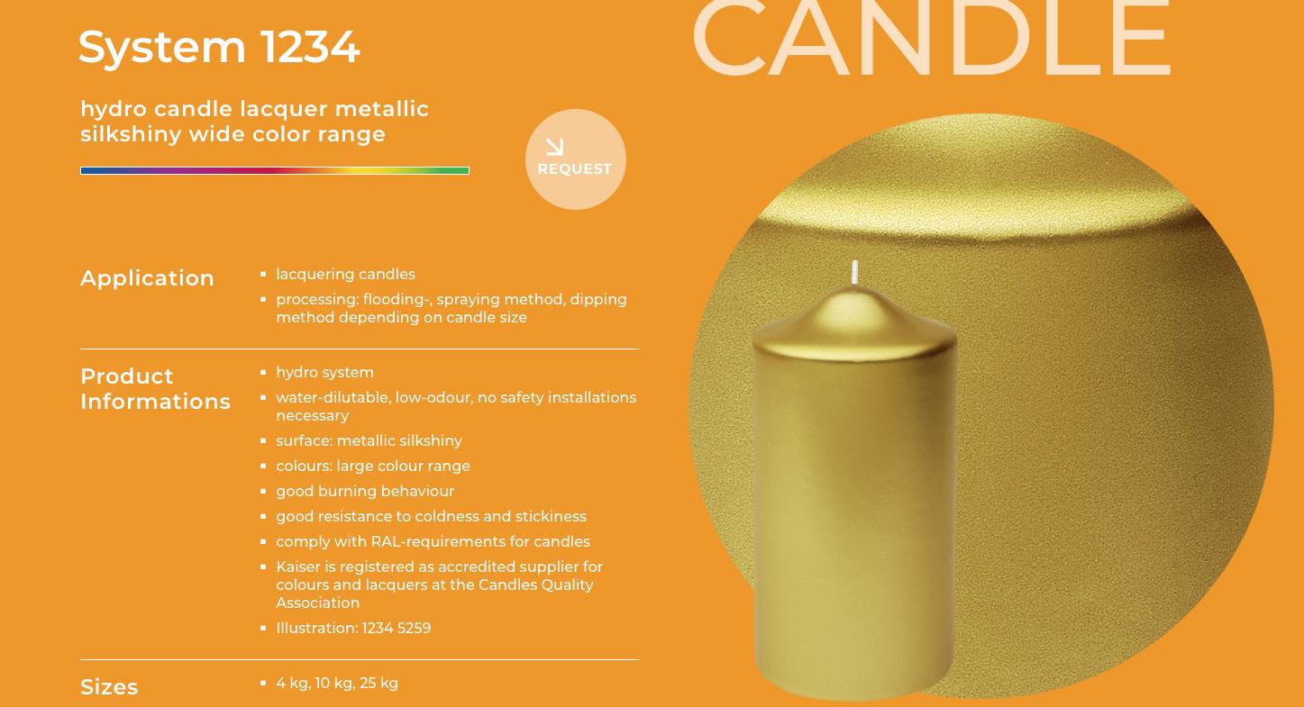 Simply dip the candle into the lacquer, holding it by the wick, once. After a few minutes, the lacquer is dry. The lacquer polymerizes completely within 24 hours.