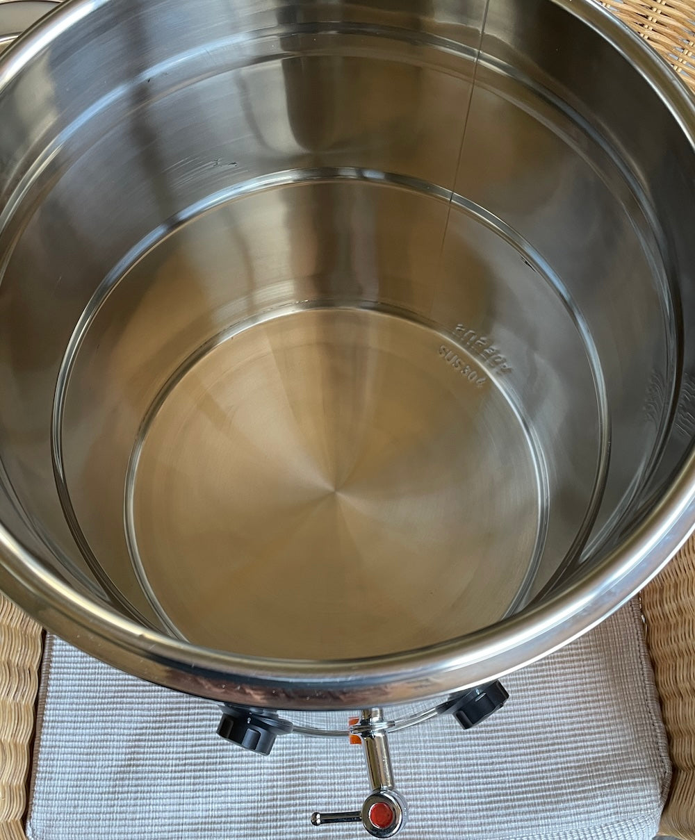 Le fondoir a une capacité de 30 litres. Il est équipé d'un robinet métallique par lequel la cire chaude s'écoule et peut être versée directement dans le moule.